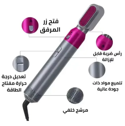 الجهاز بييجي مع 5 رؤوس مختلفة علشان تقدري تعملي أكتر من تسريحة بسهولة، سواء فرد، تمويج، أو تصفيف يومي بسيط. تصميمه خفيف ومريح في الاستخدام، وده بيخليه مناسب جدًا للاستخدام اليومي أو السفر.