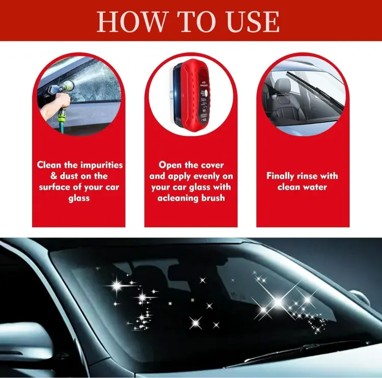 تقدر تستخدِمها مش بس على الزجاج الأمامي، لكن كمان على نوافذ السيارة والمرايات والأسطح الزجاجية المختلفة، وبتشيل أصعب البقايا زي علامات المسّاحات، الأسفلت، فضلات الطيور، وبقع المطر.